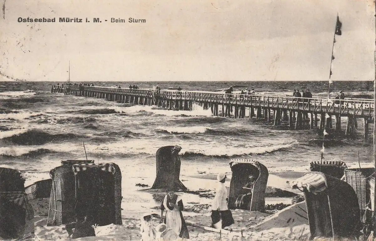 0-2553 GRAAL - MÜRITZ, Seesteg / Strand im Sturm, 1928