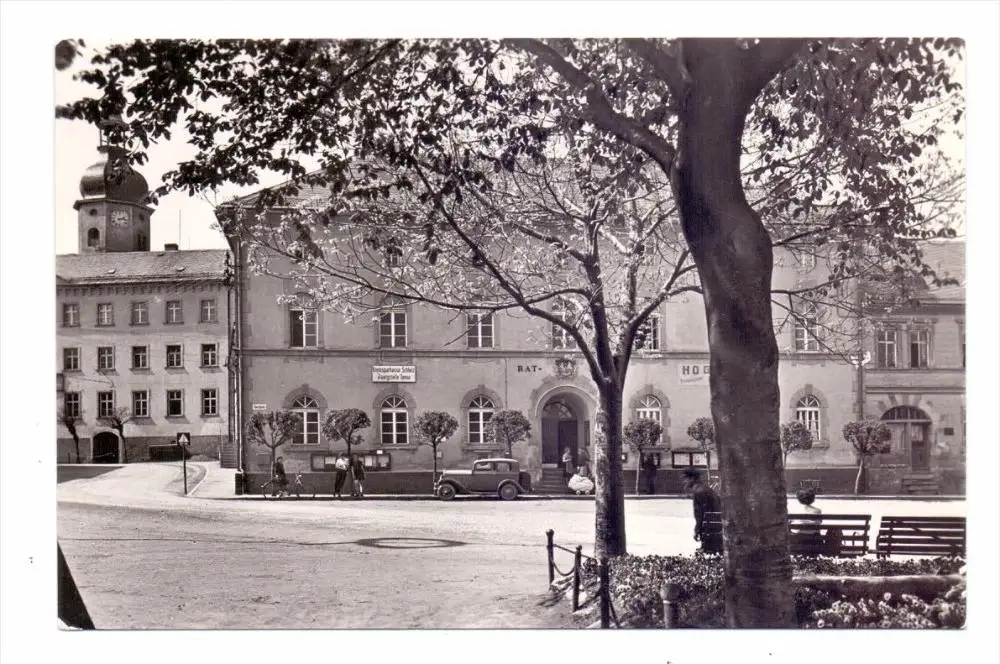 0-6556 TANNA, Markt mit Rathaus, 1959, Oldtimer