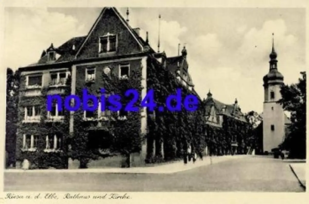 01587 Riesa Elbe Rathaus und Kirche *ca.1940