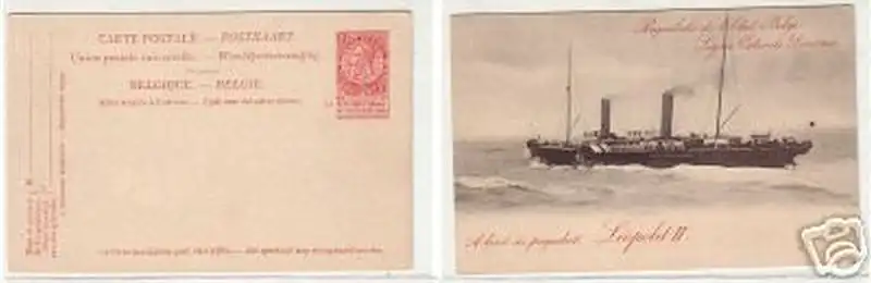 seltene Ganzsachenkarte Belgien mit eingedruckter Marke 10 Cent. rot, An Bord des Postdampfers Leopold II, ungelaufen, gute Erhaltung (minimaler Einriss) siehe Bild