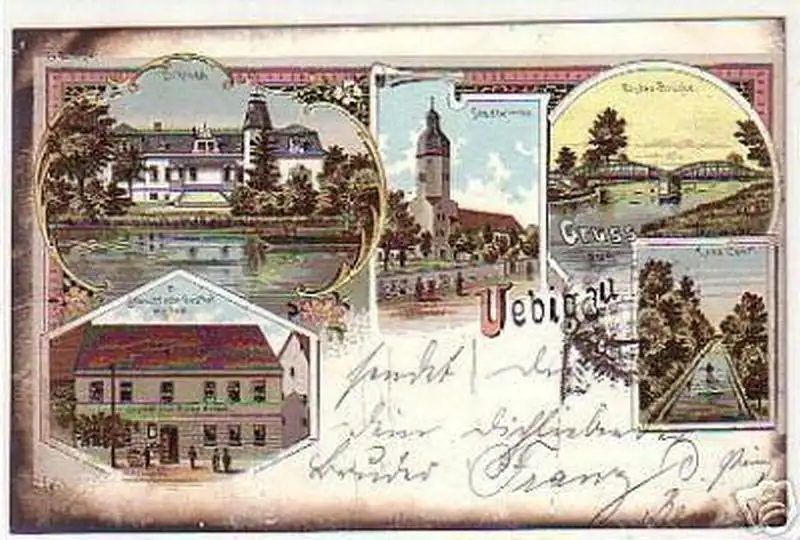 schöne farbige Lithographie, Schloss, Stadtkirche, Elster Brücke, Anna Canal, Steinert`sche Gasthof mit Post, gelaufen, gute Erhaltung siehe Bild,