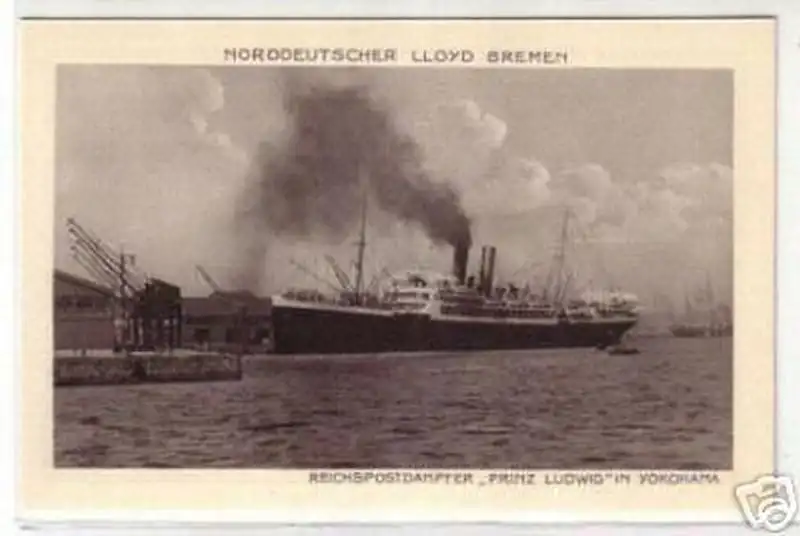 Schiff des Norddeutschen Lloyd Bremen in Yokohama, Dienst Bremen/Hamburg-Ostasien, ungelaufen, gute Erhaltung siehe Bild,