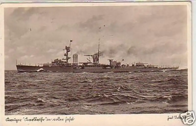 08971 Ak Kreuzer Karlsruhe in voller Fahrt 1939