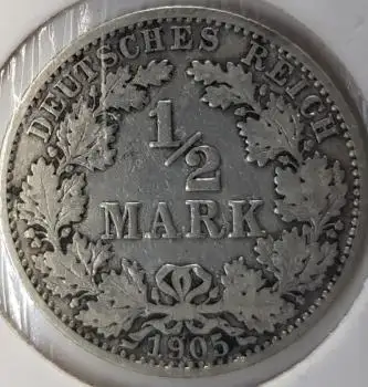 1/2 Mark 1905 A Kaiserreich Silbermünze