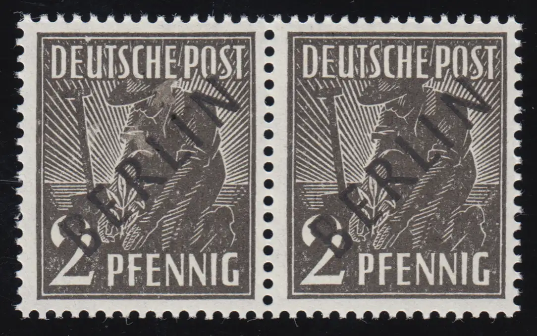 waagerechtes Paar ungefaltet, linke Marke mit Plattenfehler I