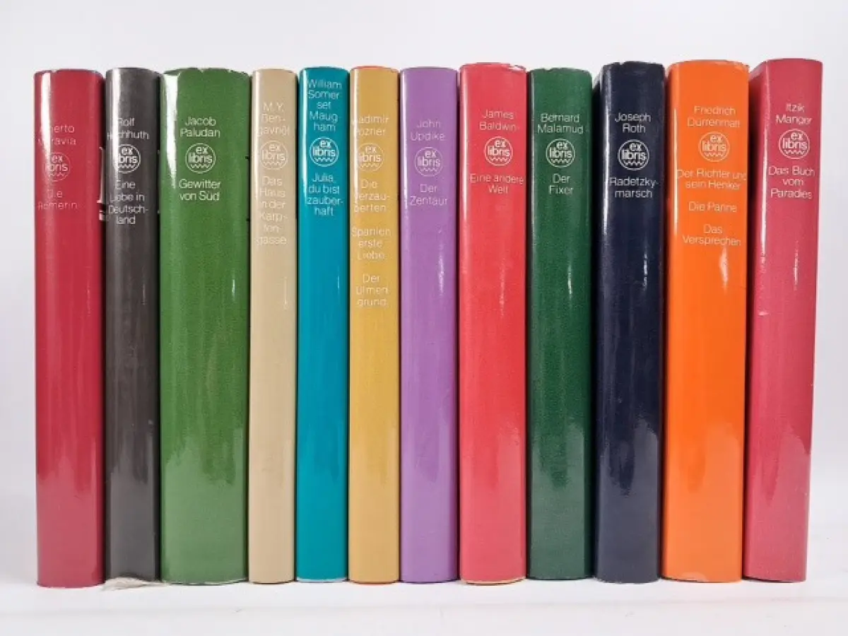 Bemerkungen: Zustand: Schutzumschläge leicht berieben, evtl. mit minimalen Randläsuren // Unser Produktfoto entspricht dem hier angebotenen Artikel. Alle Artikel befinden sich stets in gebrauchsfähigem Zustand. Gebrauchte Bücher sparen Ressourcen gegenüber Neuware und schonen die Umwelt. Titel-Auswahl nicht möglich, Sammlung so erwerbbar wie angeboten: Alberto Moravia Die Römerin / Rolf Hochhuth Eine Liebe in Deutschland / Jacob Paludan Gewitter von Süd / M.Y. Ben-gavriël Das Haus in der Karpfengasse / Vladimir Pozner Die Verzauberten Spanien erste Liebe Der Ulmegrund / William Somerset Maugham Julia, du bist zauberhaft / John Updike Der Zentaur / James Baldwin Eine andere Welt / Friedrich Dürrenmatt Der Richter und sein Henker Die Panne Das Versprechen / Itzik Manger Das Buch vom Paradies / Bernard Malamud Der Fixer / Joseph Roth Radetzkymarsch. Die Buchreihe ex libris war eine hochwertige Edition, die eine breite Auswahl an literarischen Werken internationaler Autoren abdeckte. Die Auswahl umfasste klassische sowie moderne Werke, die in einem einheitlichen, minimalistischen Design präsentiert wurden. Die Reihe wurde von Lesern geschätzt, die ein Interesse an anspruchsvoller Literatur hatten. Die klaren Farben und die prägnante Typografie auf den Covern unterstreichen die zeitlose Ästhetik und machen die Bücher zu begehrten Sammlerstücken. Ziel der Reihe war es, bedeutende Werke der Weltliteratur in einer zugänglichen und ästhetisch ansprechenden Form anzubieten.