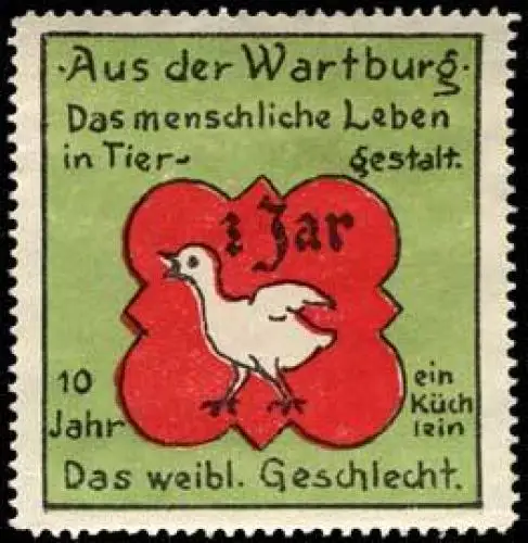 Aus der Wartburg. Das menschliche Leben in Tiergestalt. Das weibliche Geschlecht., Größe/Zustand: 5x5 , guter Zustand, Original alte Reklamemarke die seinerzeit für die Werbung benutzt wurde