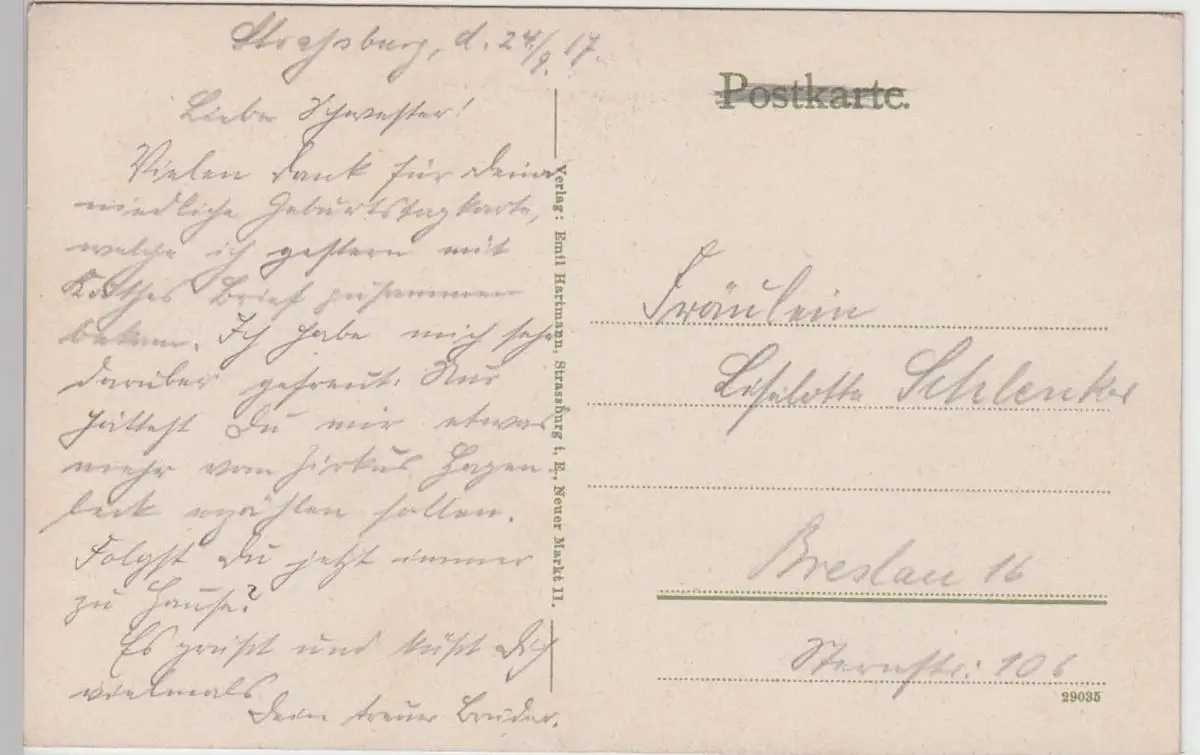 Diese Postkarte wurde von meinem Opa geschrieben und versendet. Ein Stück Erinnerung von fast 100 Jahren