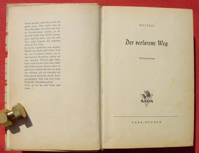 (1017020) "Der verlorene Weg". Von Roy Bell. Wildwest-Abenteuer. 256 Seiten. Saba-Verlag. Ehemaliges Leihbuch aus einer Leihbuecherei der damaligen Zeit, mit entsprechenden Gebrauchsspuren