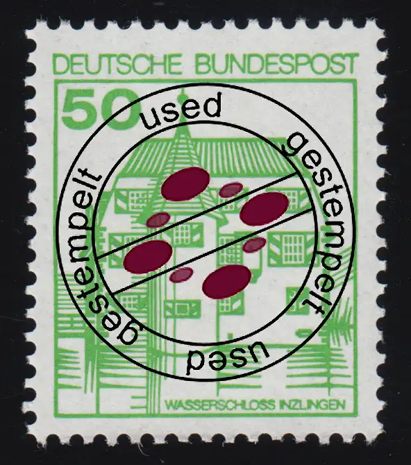 1038CI Burgen und Schlösser 50 Pf Inzlingen, BUCHDRUCK alte Fluoreszenz O