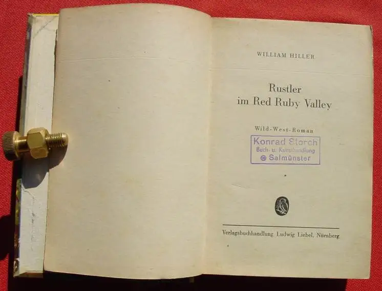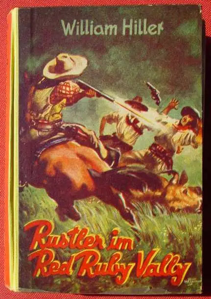 William Hiller "Rustler im Red Ruby Valley". Wildwest-Abenteuer-Roman. 256 Seiten. Verlag Ludwig Liebel. Nuernberg. Ehemaliges Leihbuch aus einer Leihbuecherei. Schutzumschlag. Mit Gebrauchsspuren und Maengeln