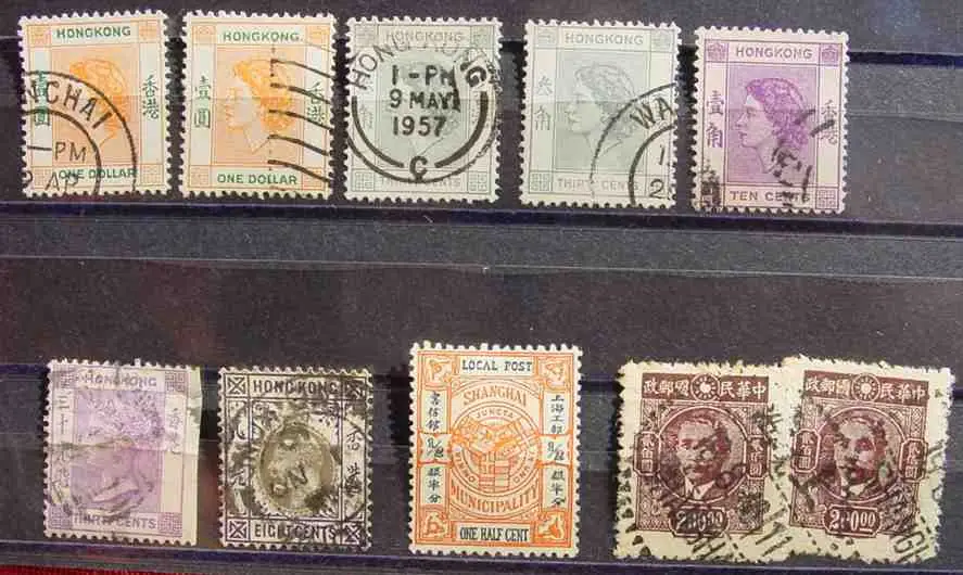 (1045894) Hongkong 22 x Briefmarken, siehe bitte Bilder. Die Briefmarken muessen so uebernommen werden, wie auf den scans zu sehen. Die Marken koennen stark gebraucht sein, ja sogar beschaedigt sein. Im Zweifelsfall bitte nicht kaufen