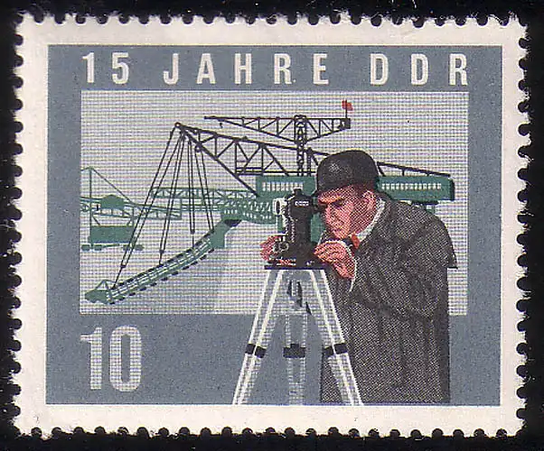 1068A DDR Tagebau/Vermessung 10 Pf, gezähnt, **