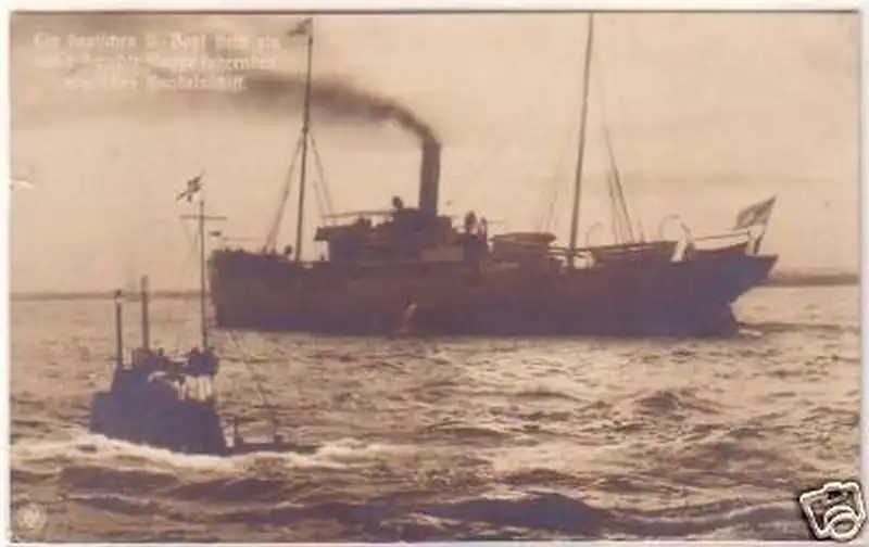 Ein deutsches U-Boot stellt ein unter fremder Flagge fahrendes englisches Handelsschiff, gelaufen als Feldpost, gute Erhaltung siehe Bild,