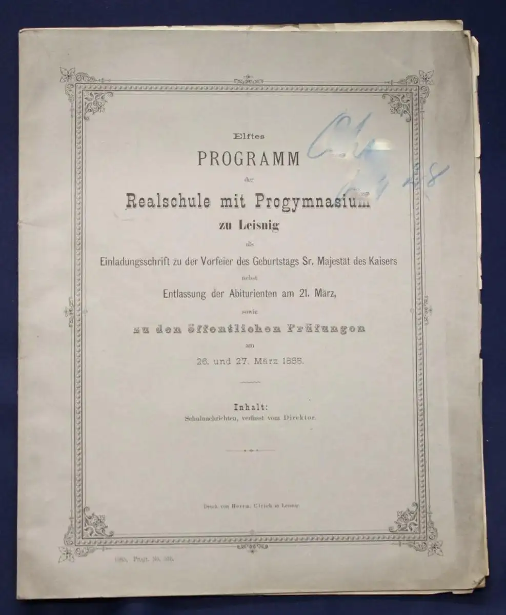 11. Programm der Realschule mit Progymnasium zu Leisnig 1885 Geschichte sf