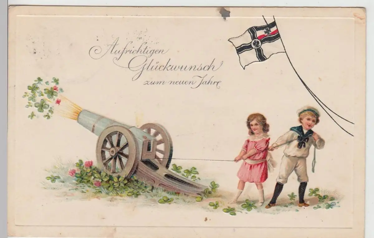 - (111026) Ansichtskarte, postcard, PPC - Glückwunsch Neujahr, Kinder feuern Kanone ab, Prägekarte, 1916
