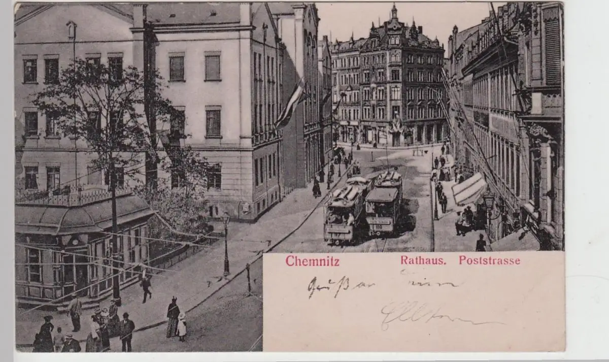 (111906) AK Chemnitz, Rathaus, Poststraße, Straßenbahn 1913