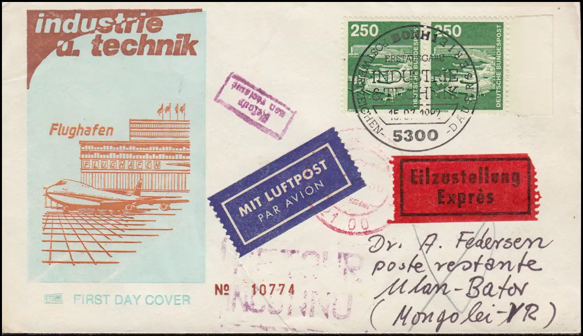 1137 IuT Flughafen Randpaar auf Lp-Eilsendung ETABO-FDC ESSt Bonn 15.7.1982