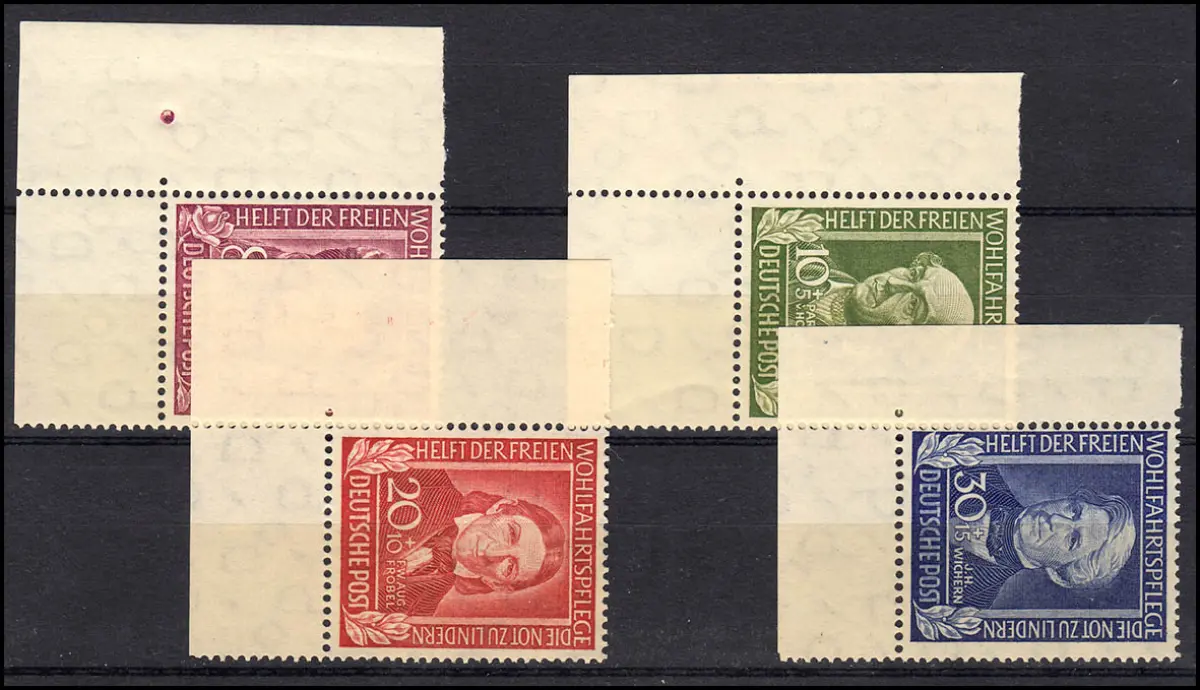 117-120 Wofa Helfer 1949, Satz Eckrand unten links, ungefaltet postfrisch **
