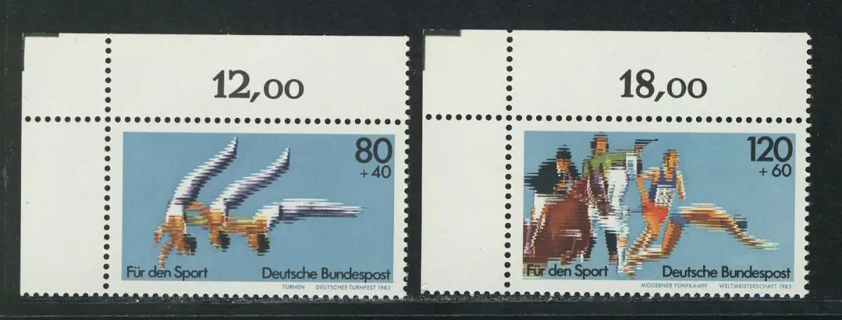 1172-1173 Sporthilfe Turnen und Moderner Fünfkampf 1983, Ecke o.l. Satz **