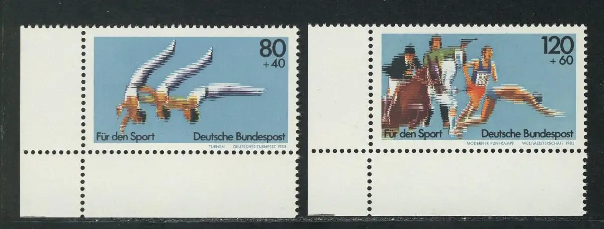1172-1173 Sporthilfe Turnen und Moderner Fünfkampf 1983, Ecke u.l. Satz **