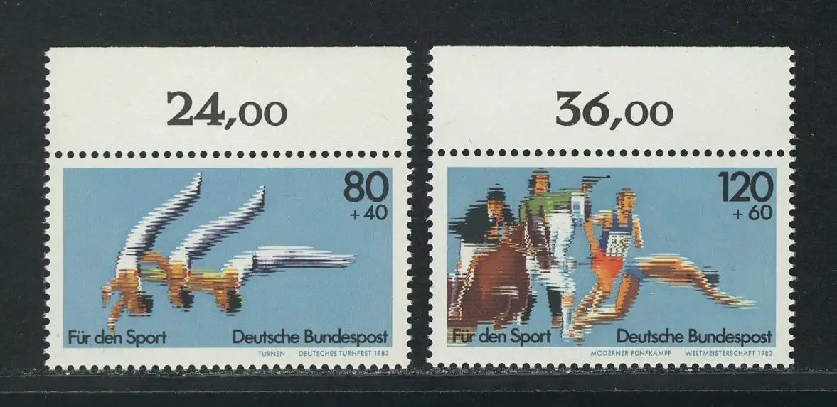1172-1173 Sporthilfe Turnen und Moderner Fünfkampf 1983, Oberrand, Satz **