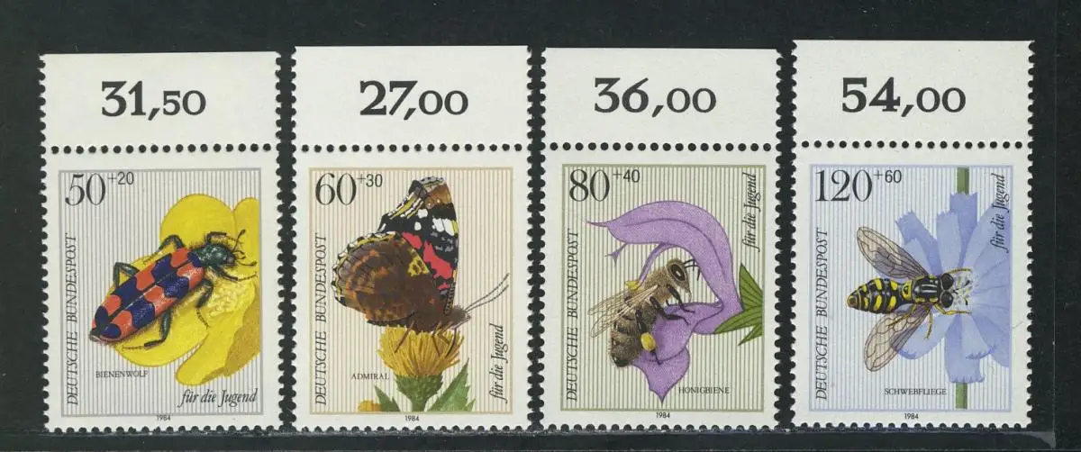 1202-1205 Jugend Bestäubungsinsekten, Oberrand, Satz **