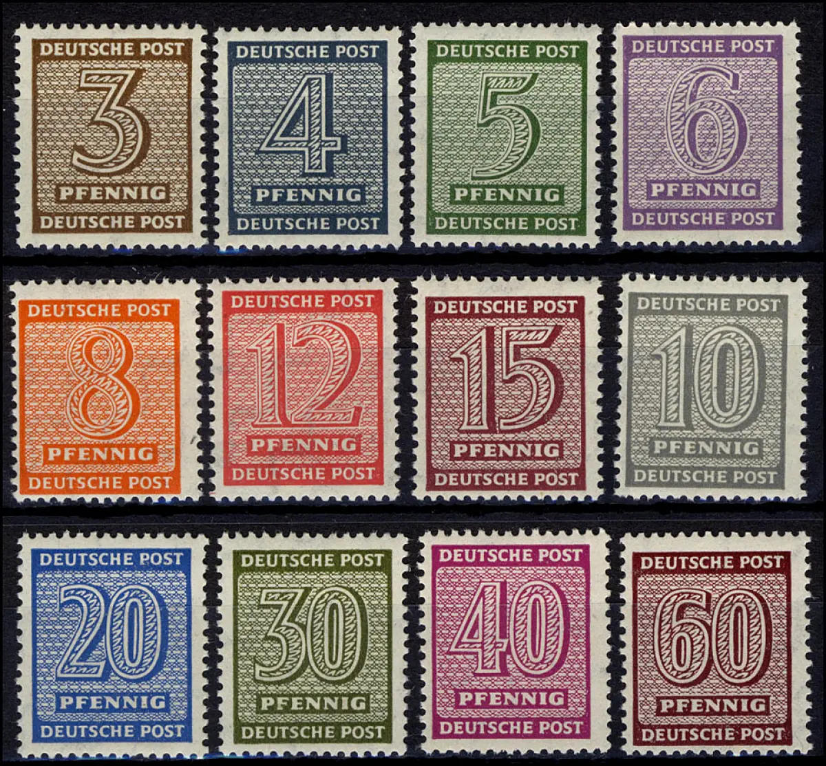 126-137Xw Ziffern, WZ fallende Stufen, Type Xw, Satz 12 Werte postfrisch **
