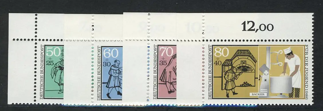 1274-1277 Jugend Handwerksberufe 1986, Ecke o.l. Satz **