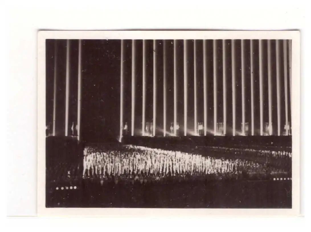 Freie Beschreibung: DT- Reich (009586) Propaganda Sammelbild, 13 Historische Tage 1937 Serie 8 Bild 63 Ein Lichtdom von Scheinwerfern wölbte