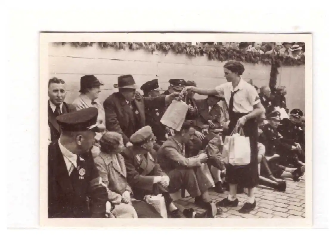 Freie Beschreibung: DT- Reich (009598) Propaganda Sammelbild, 13 Historische Tage 1937 Serie 8 Bild 92 Junge Mädchen überreichen den alten