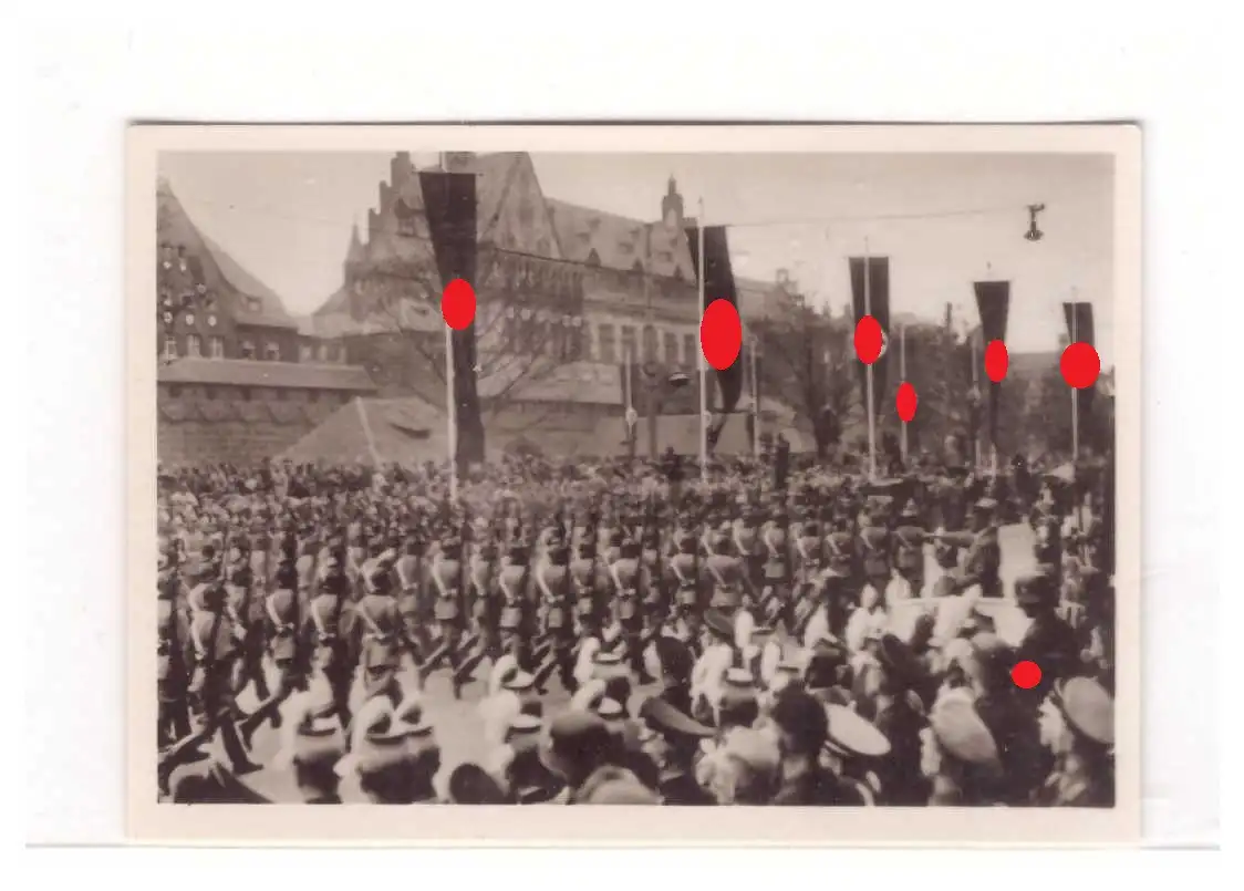Freie Beschreibung: DT- Reich (009619) Propaganda Sammelbild, 13 Historische Tage 1937 Serie 8 Bild 57 Vorbeimarsch der Polizei vor dem