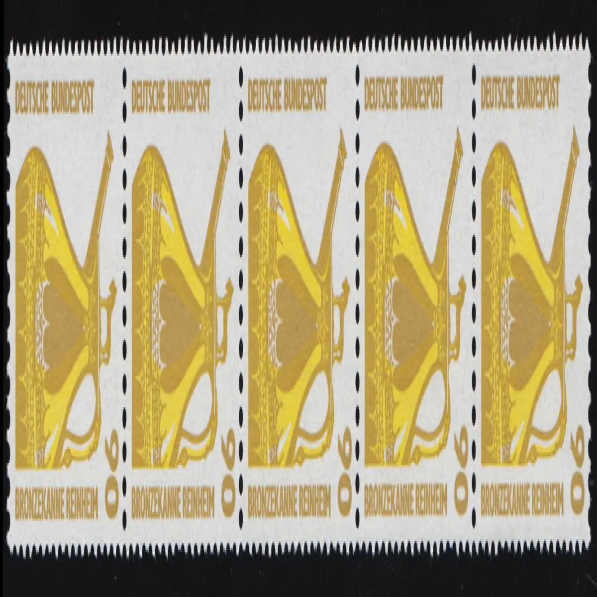 1380 SWK gelbe Gum. 90 Pf, 5er-Streifen + Nr. **
