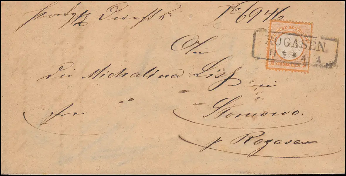 14 Brustschild ½ Groschen EF Faltbrief ROGASEN nach Slomowo, gepr. Brugger BPP