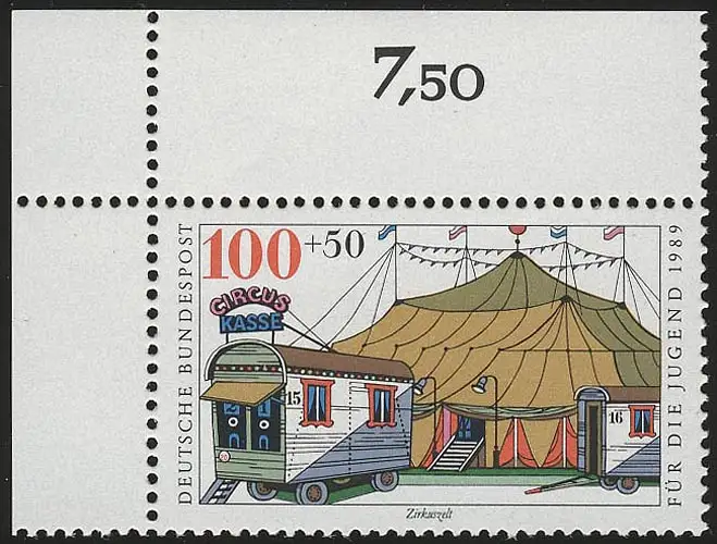 1414 Zirkus 100+50 Pf Zirkuszelt ** Ecke o.l.