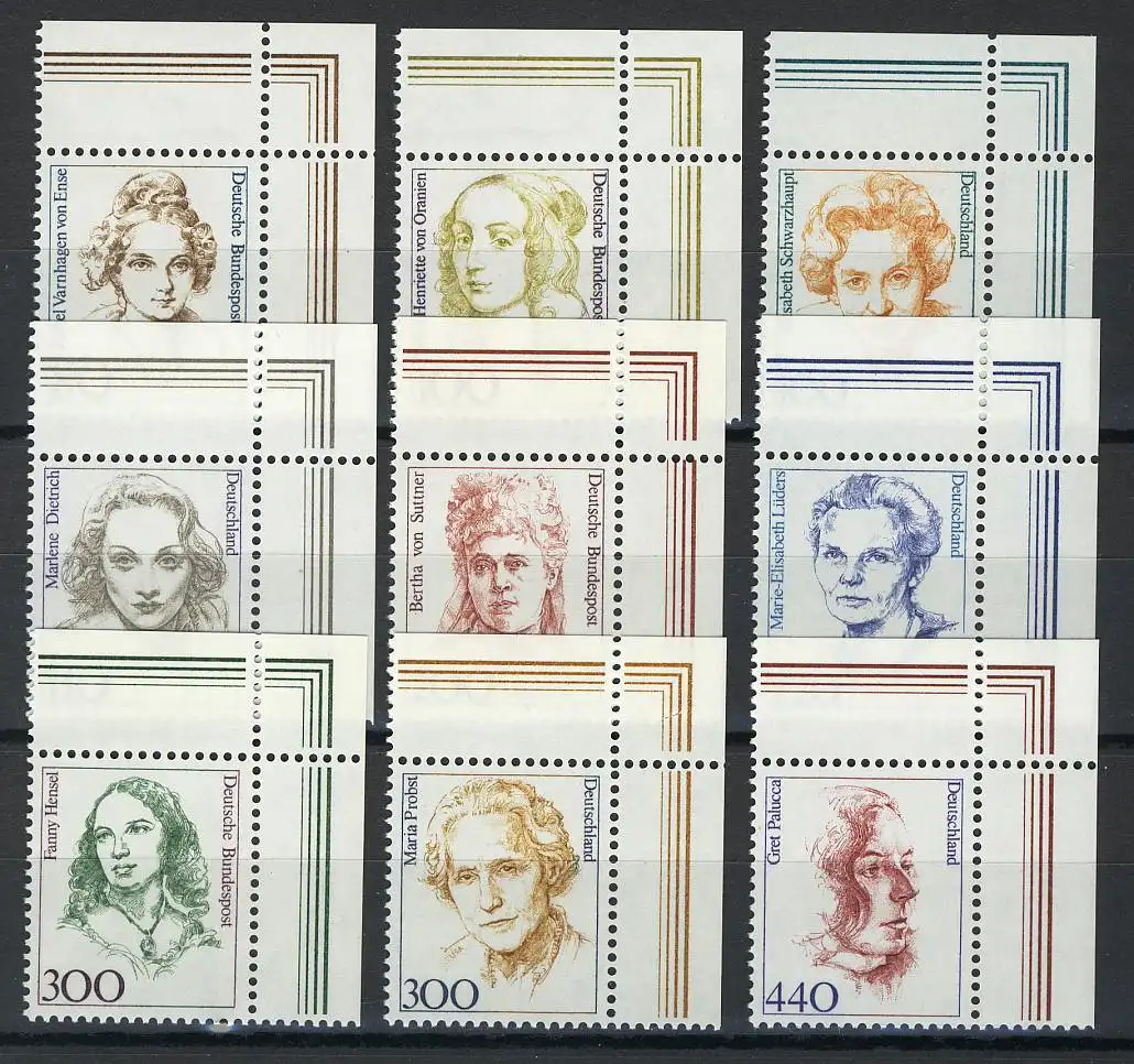 1433ff Frauen aus Zehnerbogen in DM 9 Werte Ecke oben rechts, postfrisch **