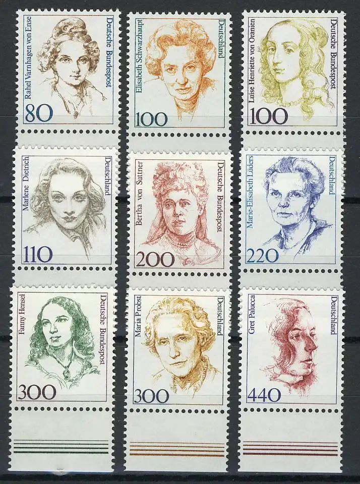 1433ff Frauen aus Zehnerbogen in DM 9 Werte Unterrand, postfrisch **