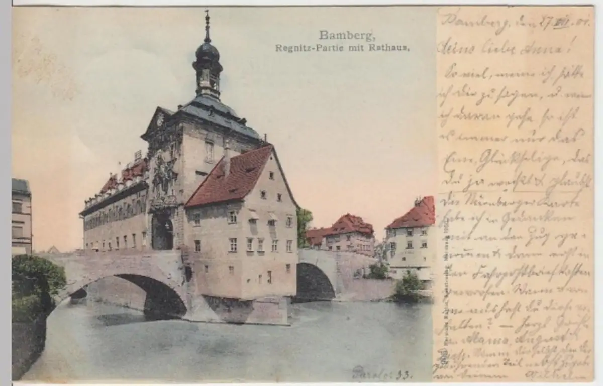 - (15395) Ansichtskarte, postcard, PPC - Bamberg, Rathaus 1901