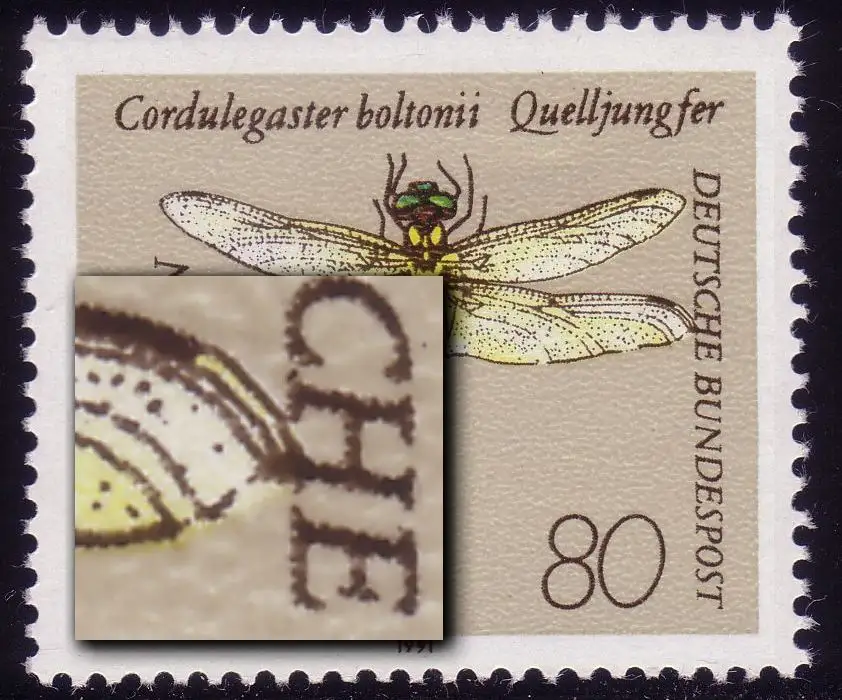 1551 Libellen 80 Pf, PLF Bruch untere Linie, Feld 15, **