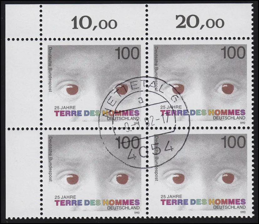 1585 Terre de Hommes: ER-Vbl oben links, zentrischer Vollstempel NETTETAL 9.1.92