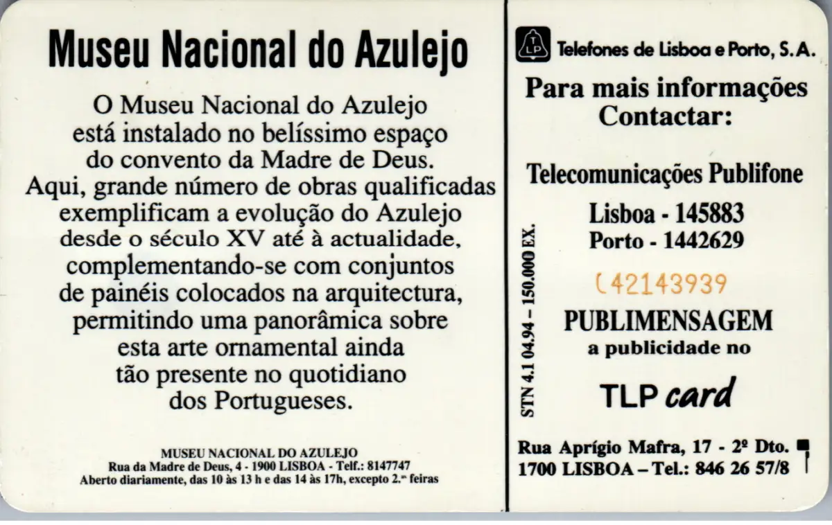 15990 - Portugal - Museu Nacional de Azulejo , TLP Card
