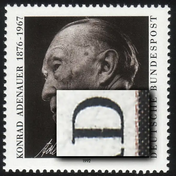 1601 Adenauer mit PLF Kerbe D von ADENAUER, Feld 15, **