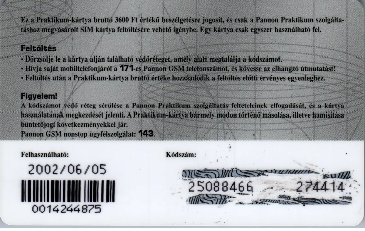 16177 - Ungarn - Pannon GSM , Praktikum Kartya