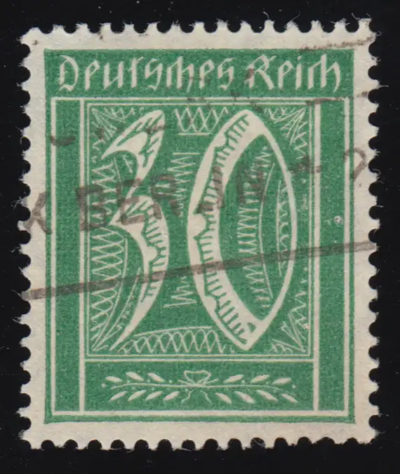 162 Ziffer 30 Pf. mit PLF I Keil in der Null, Bahnpost-Stempel, INFLA-geprüft