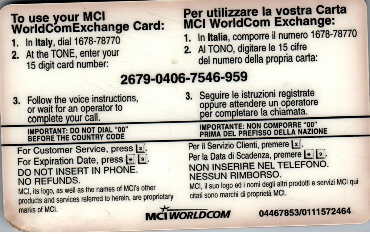 16246 - Italien - MCI Worldcom Exchange Card , Weihnacht Motiv