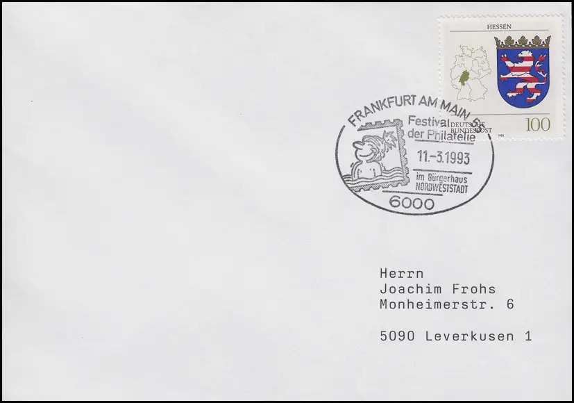 1660 Hessen, EF FDC ESSt Frankfurt/Main Festival im Bürgerhaus 11.3.1993