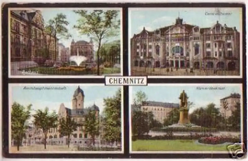 Rathaus, Centraltheater, Amtshauptmannschaft, Körnerdenkmal gelaufen gute Erhaltung (Altersspuren), siehe Bild