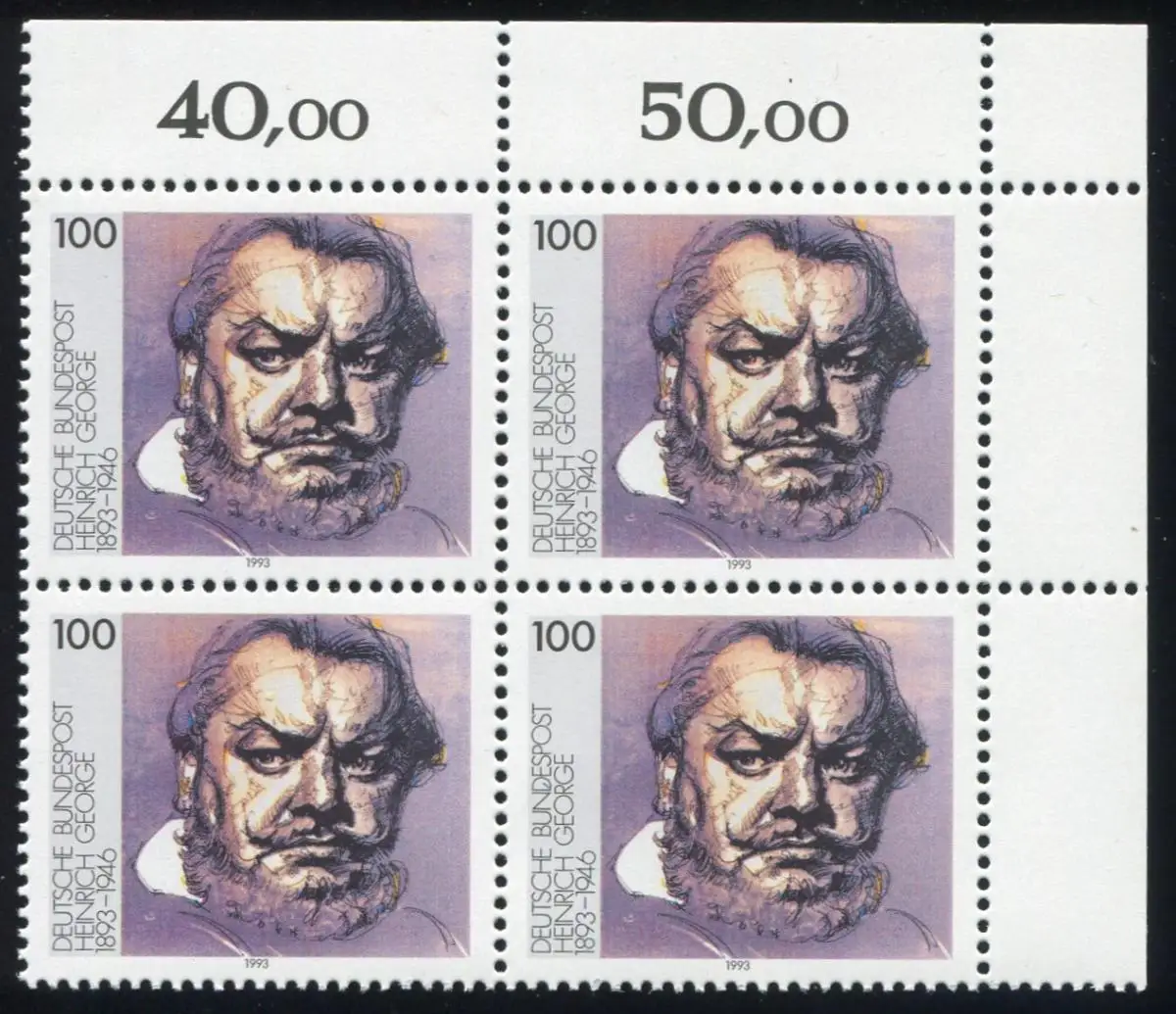 1689I/II George: Eckrand-Viererblock oben rechts mit Michel-PLF I und II, **