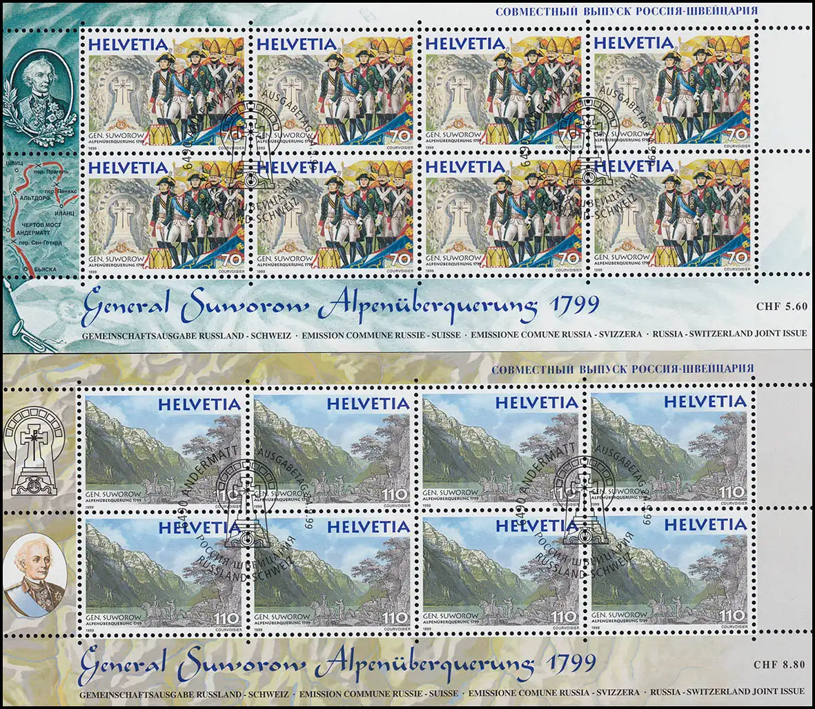1699-1700 Alpenüberquerung 1799-1999, Kleinbogen-Satz, ESSt ANDERMATT 24.9.99