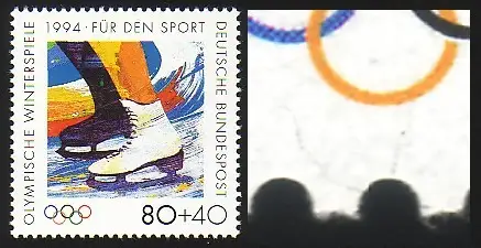 1717 Sport 80 Pf, PLF schwarzer Bogen unter dem gelben Ring, Feld 7, **
